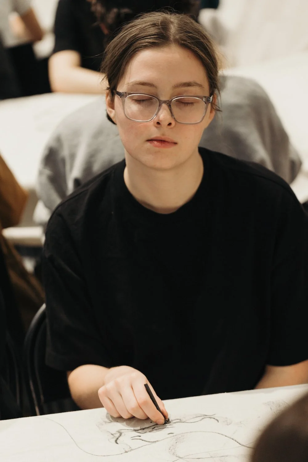 My focus was on capturing these small moments: the dust on fingertips, the shifting patterns of light on the paper, and the quiet concentration in the room. Each image tells the story of hands in motion, ideas taking shape, and the beauty of marks that were never meant to stay.