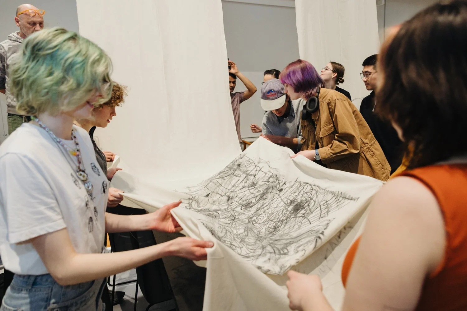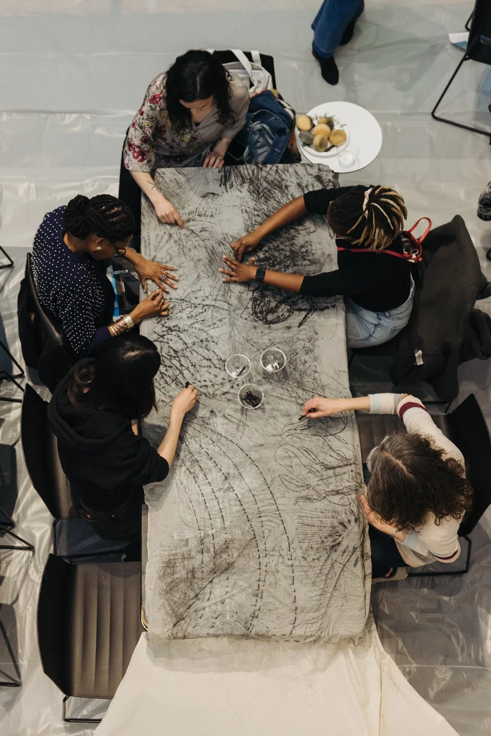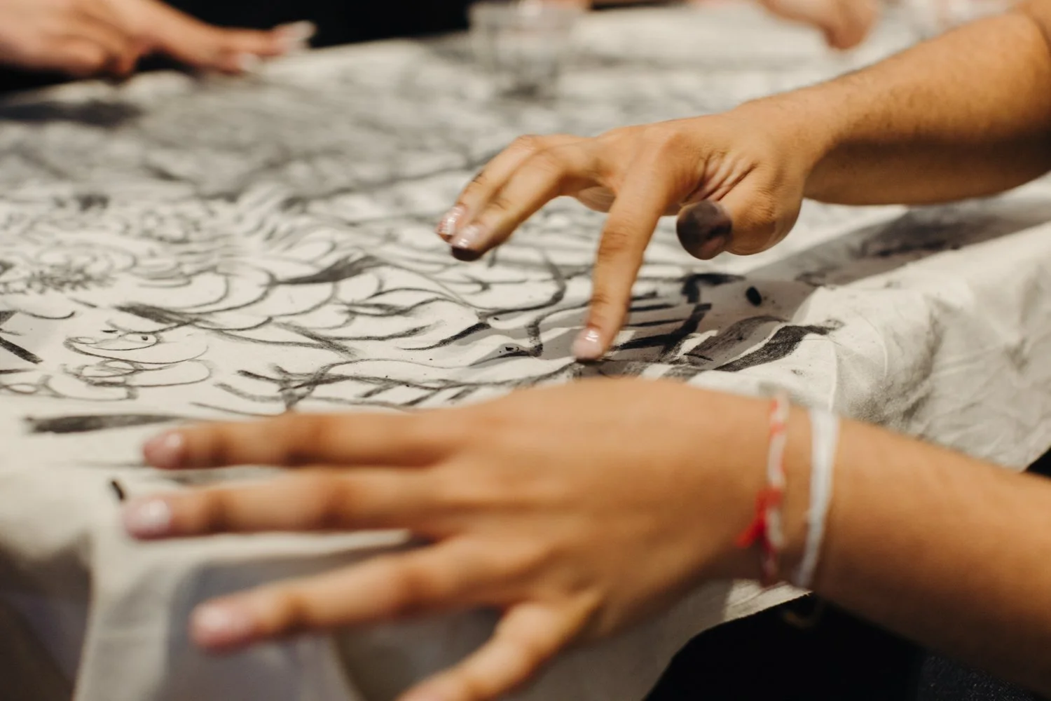 At Haverford College, artist Shannon Alonzo led a hands-on workshop hosted by The Sense Archive, guiding participants through a process of creating and letting go. Using charcoal, they made marks—bold, delicate, messy, intentional—before washing them away, exploring the connection between movement, memory, and impermanence. It was less about the final product and more about feeling through the process, embracing change, and noticing the textures left behind.